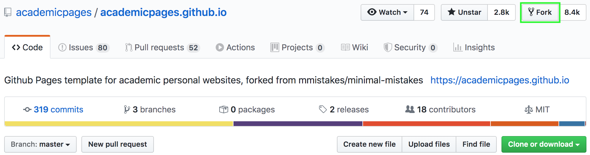 Ignore the “Choose a theme” button; it’s for use with bare bones GitHub pages sites and the academicpages template supplies all the components for its theme. ↩
