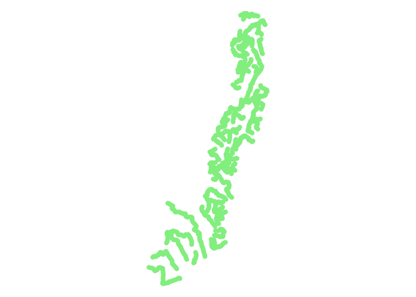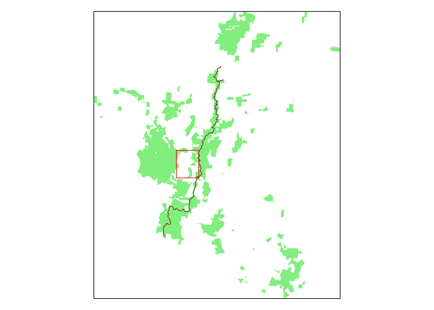 plot(unf$osm_multipolygons$geometry, col = 'lightgreen', border = NA, bty = 'n')