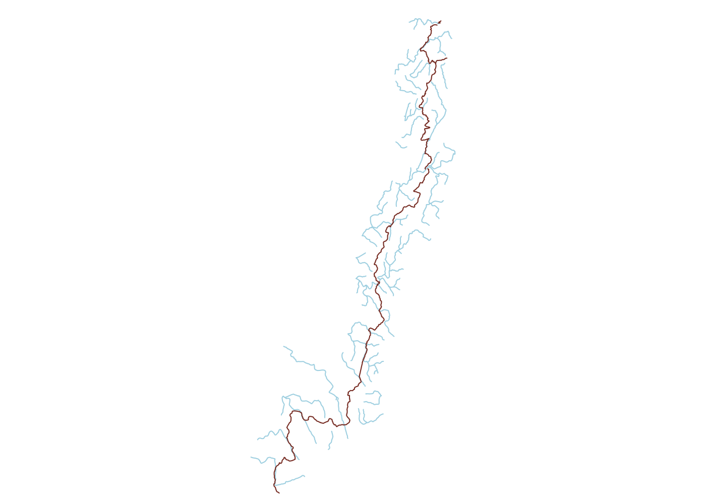 That means I’m spending a decent chunk of time thinking about and planning future trips. At some point in the process of doing this, I realized that I could use the GIS skills from my day job to help make planning future trips more efficient. In this post I walk through how you can use GIS tools in R to help with some of the route planning for a multiday backpacking trip. Specifically, how you can use open source spatial data on geography and transportation infrastructure to identify potential campsites along a hiking trail.